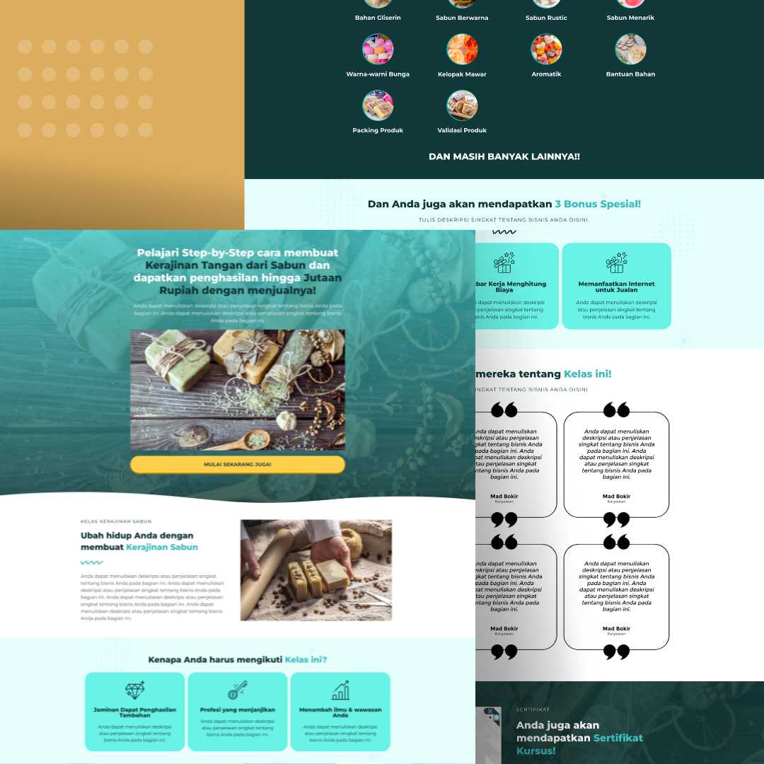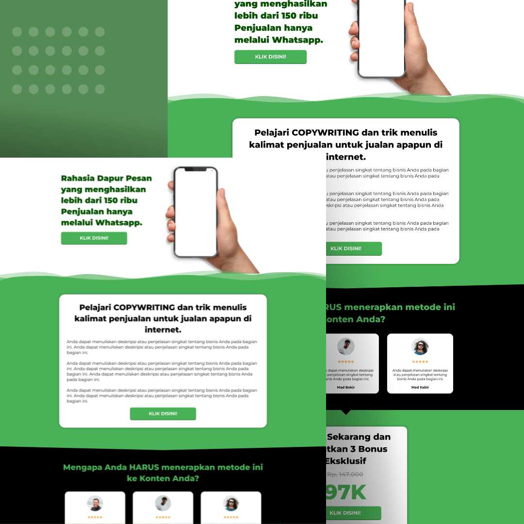 Gak bisa bikin landing page? Tenang! Kami sudah menyediakan landing page creator instan. Cukup isi data, maka dalam 5 menit Anda bisa langsung punya landing page untuk jualan