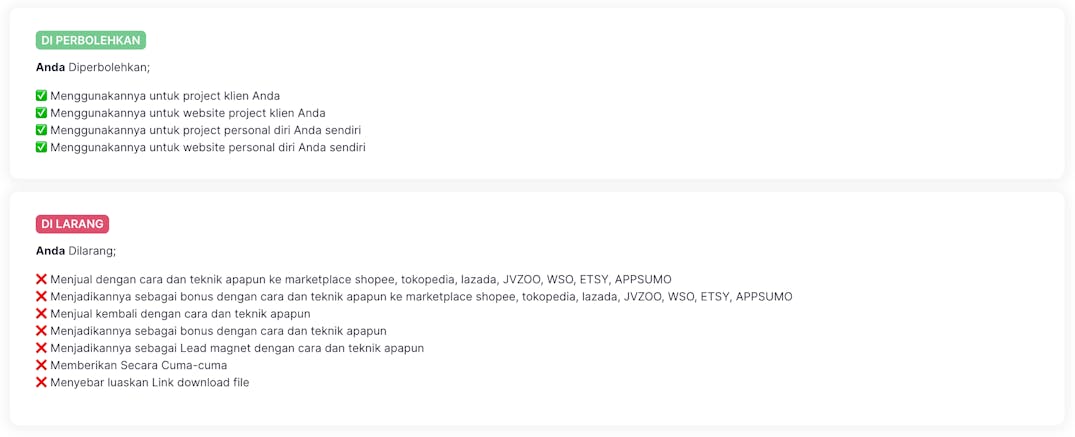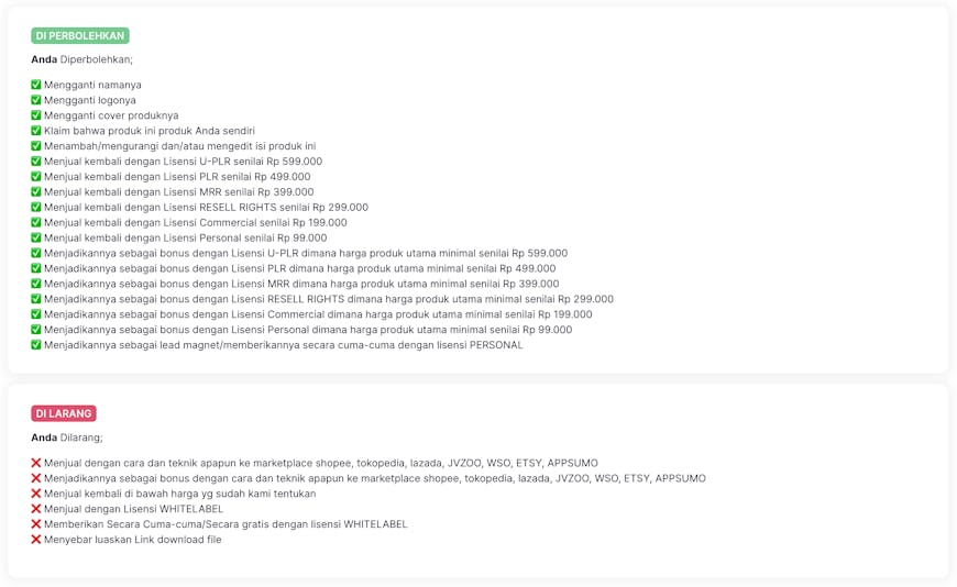 - Boleh dijual Kembali dengan lisensi Personal, Komersial, Resell Rights, MRR, PLR, U-PLR