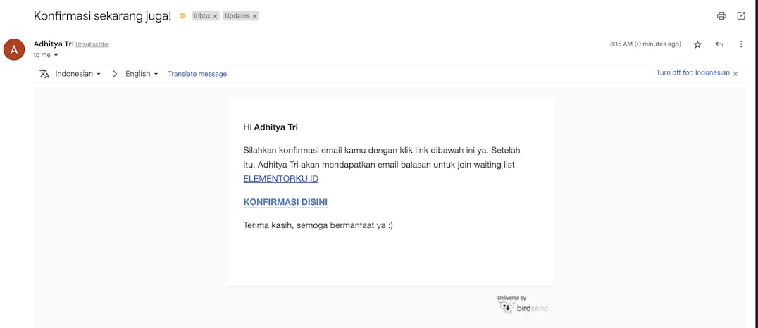 Silahkan cek email Anda. Seharusnya Anda mendapatkan email seperti contoh gambar dibawah ini